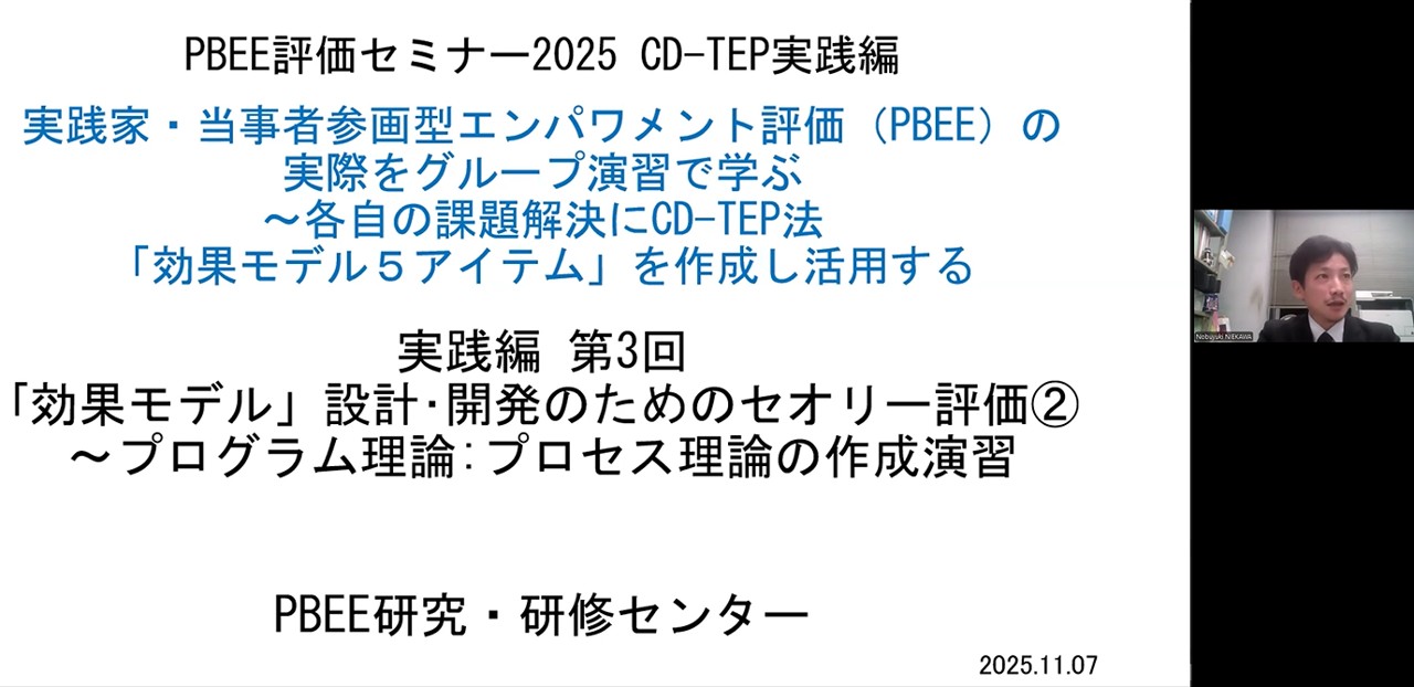 2025年11月7日(金)18:30~20:30までオンラインで、【PBEE評価セミナー2025:CD-TEP実践編】の第3回目を開催いたししました。セミナー登録者は21名でした。