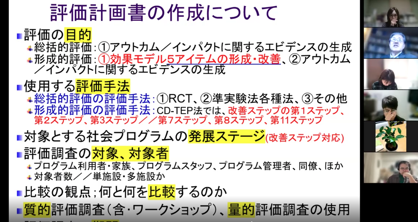 2026年1月23日(金)18:30~20:30までオンラインにて、PBEE評価セミナー2025実践編の第5回目「『効果モデル』形成・改善への評価ツール作成②~フィデリティ尺度、アウトカム尺度の進め方」を開催いたしました。今回のセミナーの参加登録の方は19名でした。