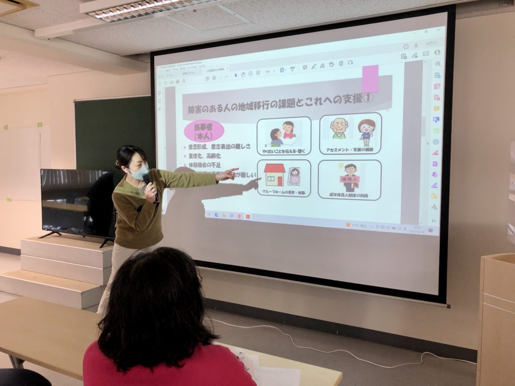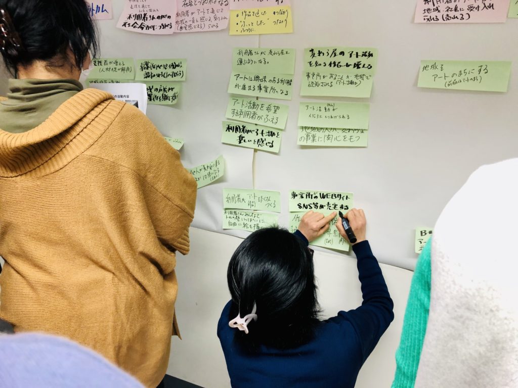 こととし、「就労継続支援B型事業所で行うアートの時間(NPO法人麦わら屋提供)」、「入所施設からの地域移行(社会福祉法人東京都手をつなぐ育成会すだちの里すぎなみ提供)」の2事例をもとに、ワークショップによるロジックモデルづくり演習に取組みました。