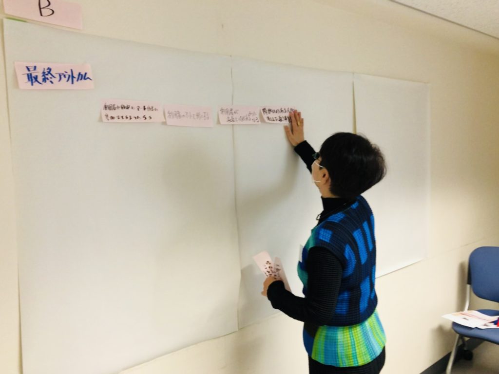 参加者の皆様からは熱心なご参加をいただき、ロジックモデル作成ワークショップのなかでも「このカードとこのカードは同じ意味ではないか」、「このカードはこのカードの手段になるのではないか」など積極的なご発言をいただきました。
