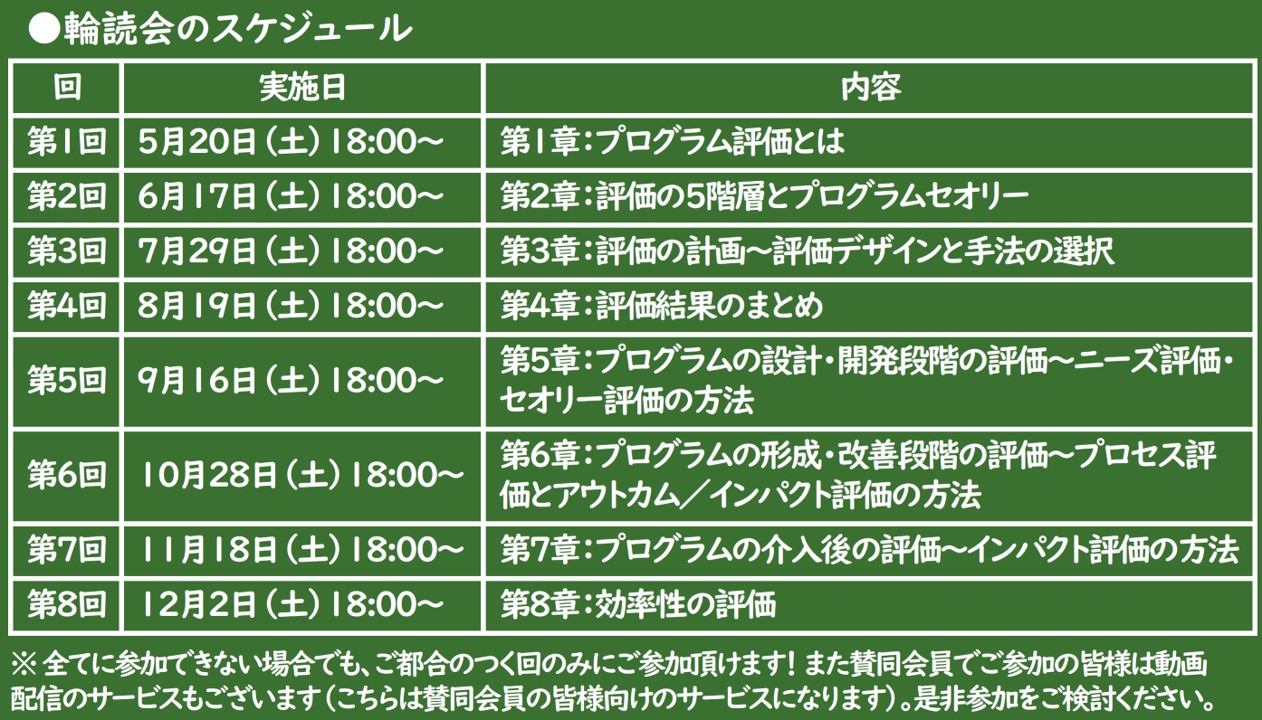 本勉強会では、このプログラム開発&評価の方法論を皆様と一緒に学ぶ機会として『プログラム評価ハンドブック輪読会』を開催します。