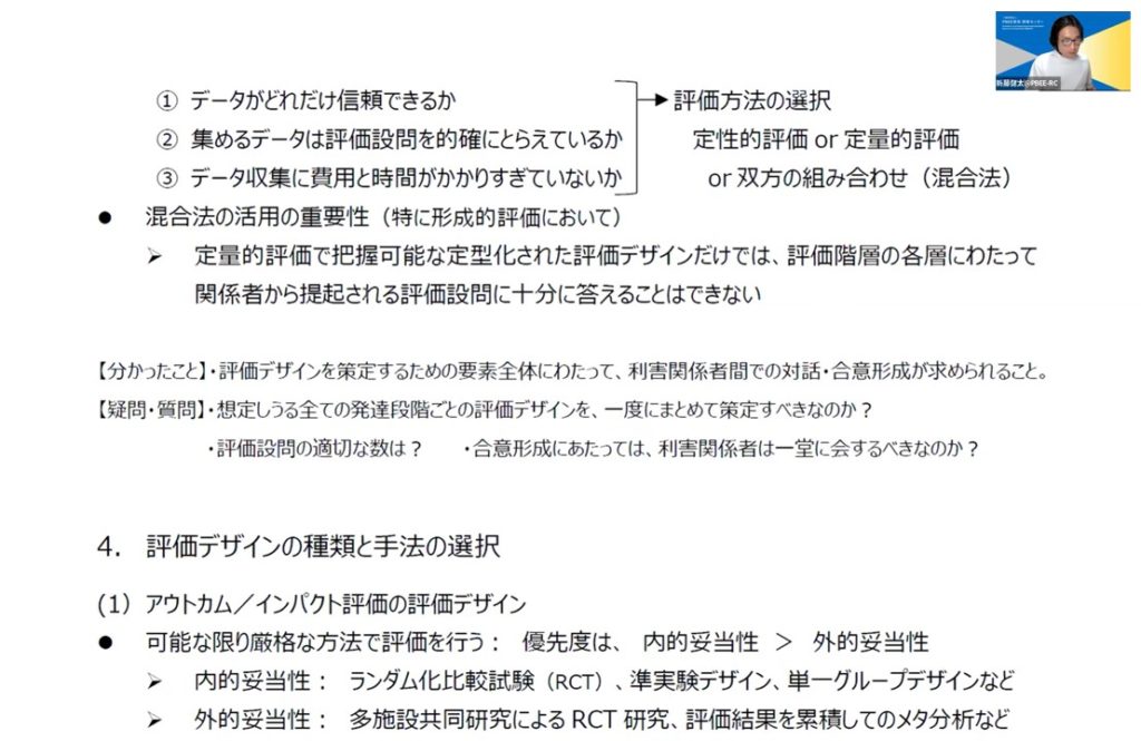 プログラム評価を実施していくうえで、特に重要な部分でしたので、ご報告いただいた粕川さん、ご参加いただいた皆様と議論をしながら理解を深めることができ、大変有意義な時間になりました。お忙しいなか、ご報告いただいた粕川さん、ご参加いただいた皆様、誠にありがとうございました!