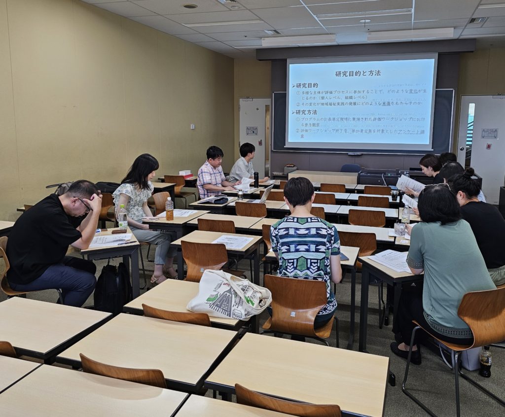 2024年9月7日(土)、明治大学駿河台キャンパスにて「プログラム評価入門セミナー第4弾:プログラム評価勉強会」を開催致しました。事務局含め、勉強会には11名の方々にご参加頂きました。当日は、はじめに勉強会の趣旨・目的の説明や参加者自己紹介があった後、参加者のなかからお二人の方にプログラム評価に関する実践・研究をご発表頂き、これをもとに参加者間でディスカッションを行いました。